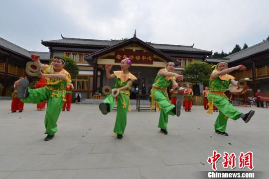4月1日,巴中市平昌县民间艺人表演当地巴山民俗文化“翻山铰子”。 高寒 摄